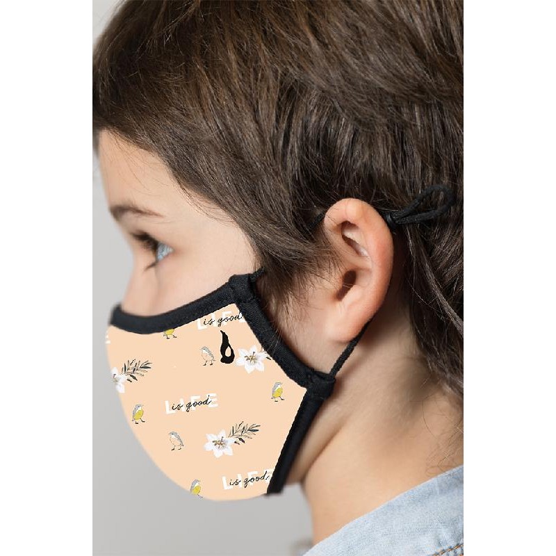 Mascarilla unisex higiénica para niña/o homologada, lavable y reutilizable hasta 30 lavados. En tejido de doble tela 285GR/M2 transpirable e impermeable, que se adapta fácilmente a la cara gracias también a las gomas ajustables detrás de las orejas. No se trata de un producto sanitario, sino un dispositivo de protección individual para sentirnos más seguros y protegernos mutuamente. Es muy cómoda y combinable para que también los más pequeños puedan salir a la calle con estilo.