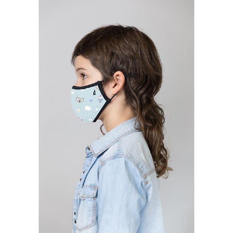 Mascarilla unisex higiénica para niña/o homologada, lavable y reutilizable hasta 30 lavados. En tejido de doble tela 285GR/M2 transpirable e impermeable, que se adapta fácilmente a la cara gracias también a las gomas ajustables detrás de las orejas. No se trata de un producto sanitario, sino un dispositivo de protección individual para sentirnos más seguros y protegernos mutuamente. Es muy cómoda y combinable para que también los más pequeños puedan salir a la calle con estilo.
