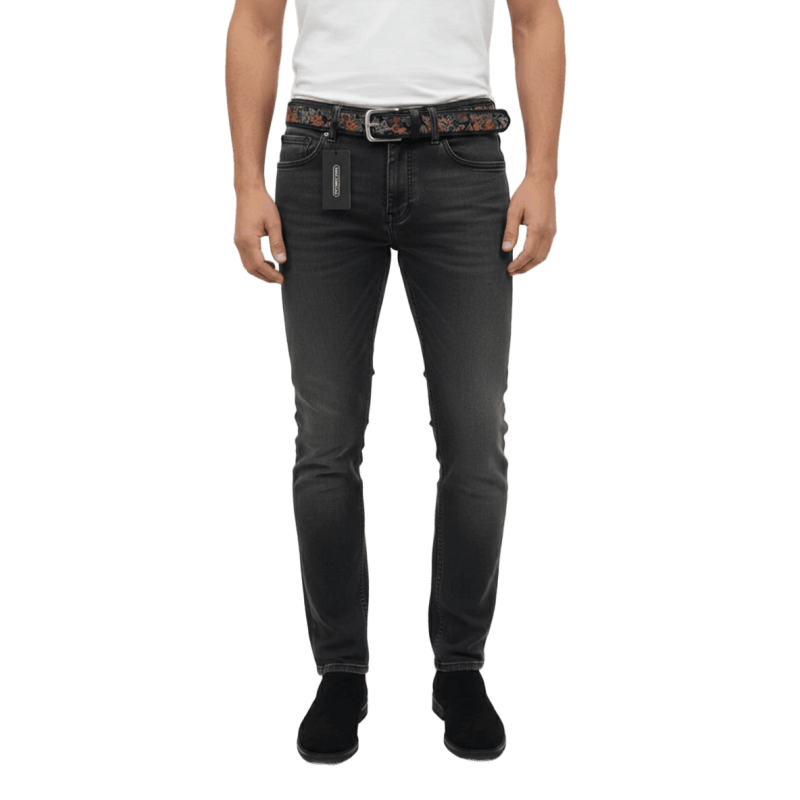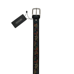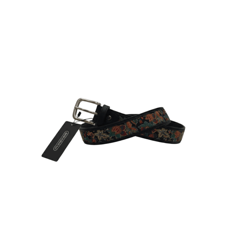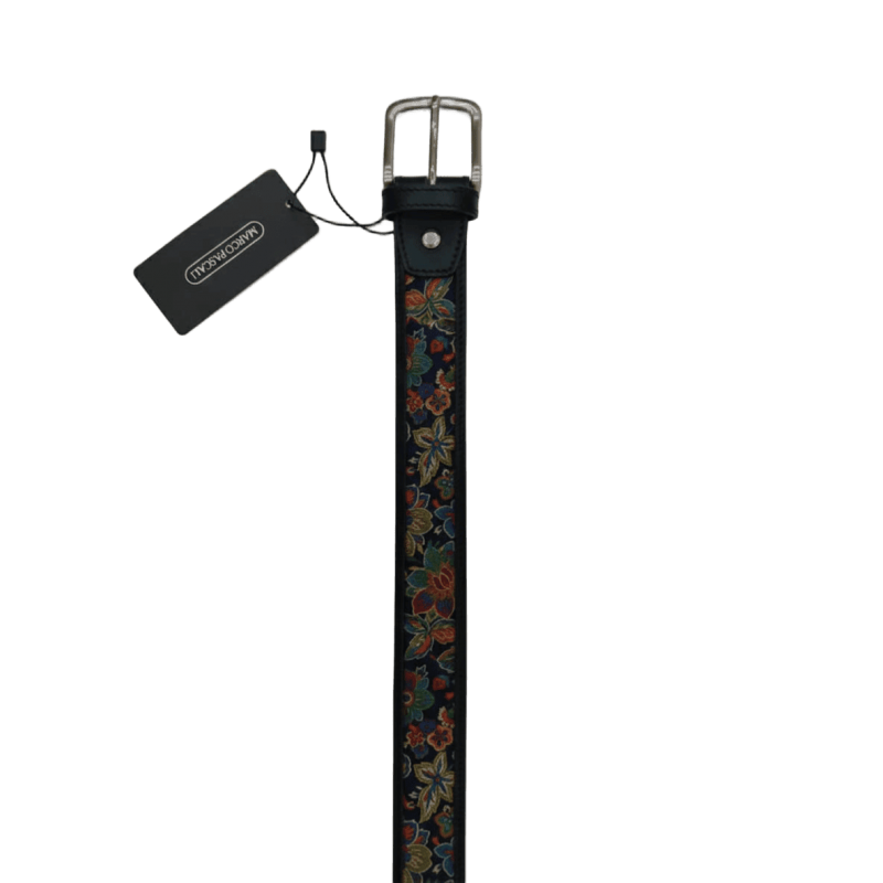 Cinturón de hombre MARCO PASCALI en piel y seda estampada. Un cinturón distinto tanto para un look sport como elegante. Se puede combinar con corbata a juego.