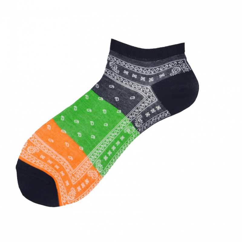 Calcetín de hombre ALTO MILANO tobillero modelo YURI. El calcetín disponible en dos colores multicolor naranja-verde-azul y celeste-naranja-azul. Unos calcetines cómodos e ideales tanto para un estilo sport como más formal, ideales para ir con sneakers.