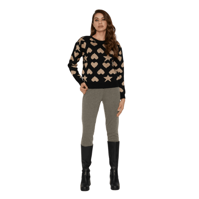 Pantalón LYLU en estampado geométrico en negro y beige, el pantalón es tipo legging cierre con cremallera en la parte trasera. Un pantalón ideal para combinarlo con cualquier prenda. Una pieza casual a la vez que elegante. Un pantalón ideal para esta nueva temporada otoño-invierno.