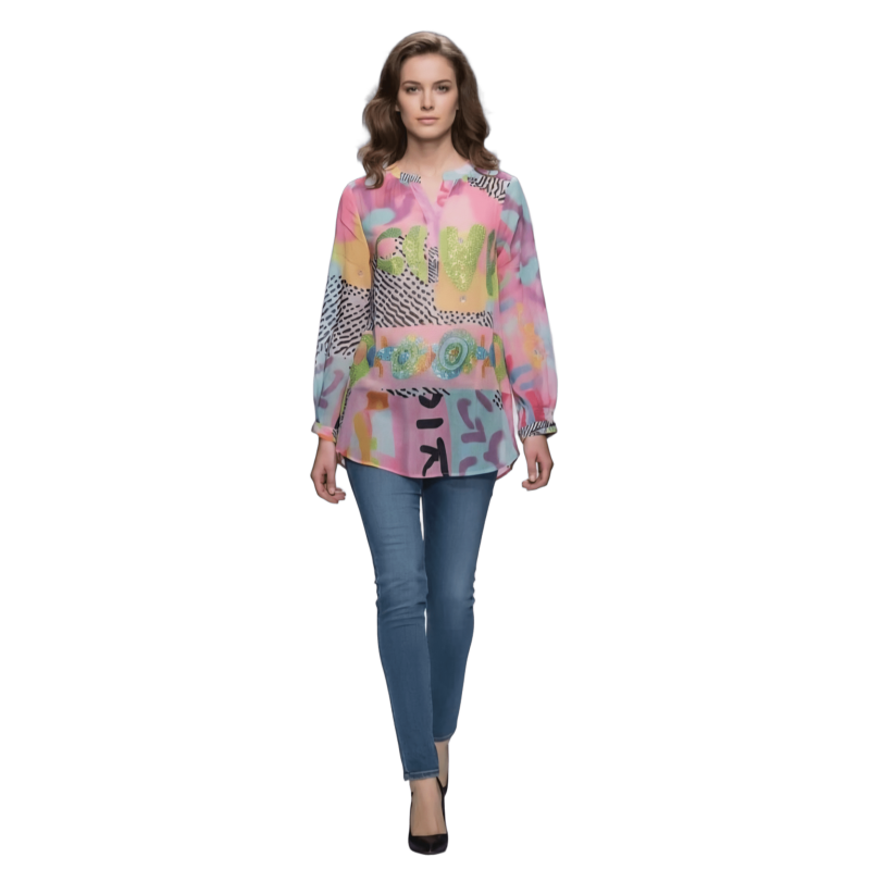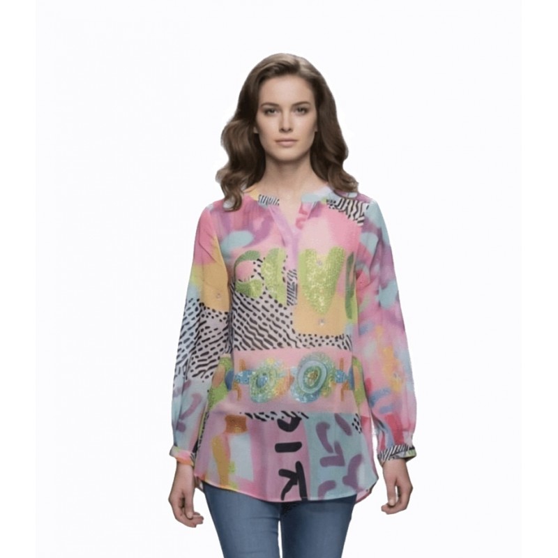 MISSY Camisa larga traslúcida brillos