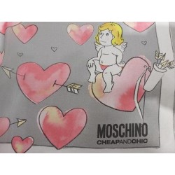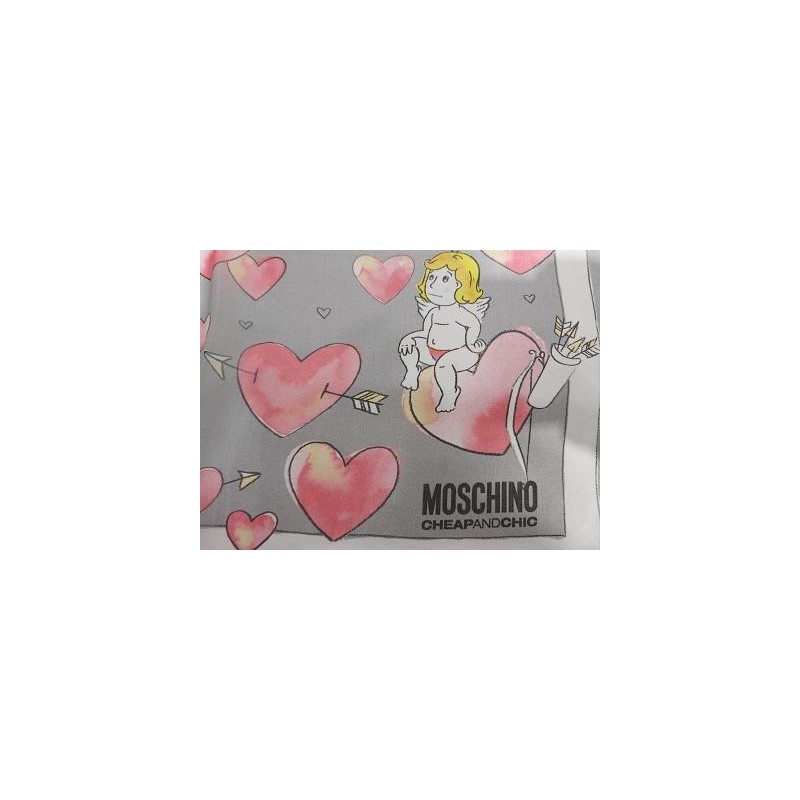 Foulard 100% seda MOSCHINO en color gris y dibujo de corazones y dos cupidos online y al mejor precio en Luxury-shop.