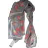 Foulard 100% seda MOSCHINO en color gris y dibujo de corazones en tonos rosados y dos pequeños cupidos en cada punta. Un básico para este invierno.