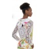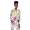 Chaqueta NICE ISTANBUL con cremallera y capucha y manga larga con encaje, fondo en color blanco y estampado en colores rosa. En la parte trasera, logo de la marca.