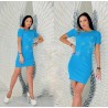 Vestido TATU celeste con dibujo de estrellas en pedrería, de manga corta asimétrica combinada con tira en pedrería. Un look cómodo para brillar esta temporada.