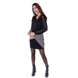 Camiseta LYLU con manga larga, las mangas son transparentes, remate con pequeños volantes en la parte de los hombros. Una camiseta ligera y muy combinable para este otoño-invierno. Una camiseta cómoda y básica, ideal para combinarla con jeans, pantalones o faldas.
