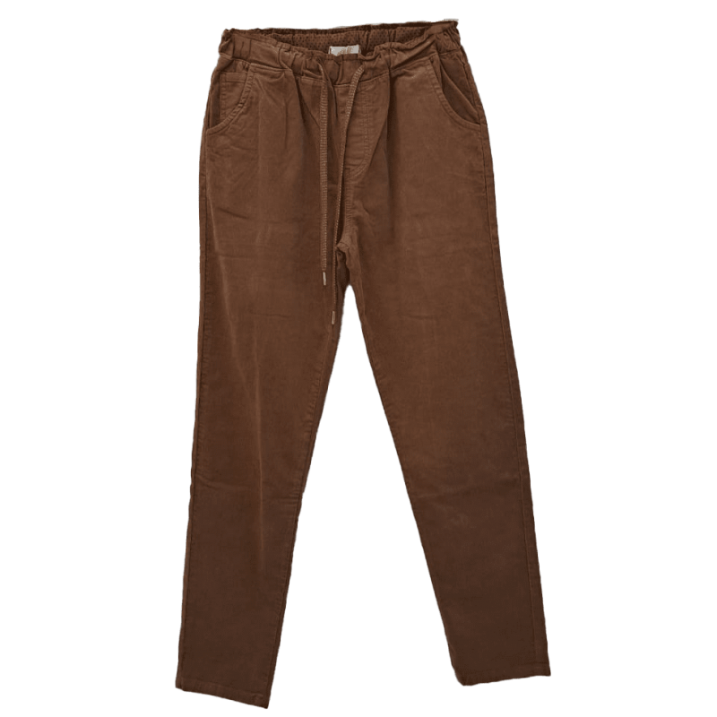 Pantalón pana fina SCUSI. Un pantalón cómodo con goma en la cintura, tipo sport, haciendo de él una prenda super cómoda. El pantalón consta de dos bolsillos en la parte delantera, ideal para combinarlo con camisetas, blusas o sudaderas. Un look fashion para brillar esta temporada.