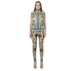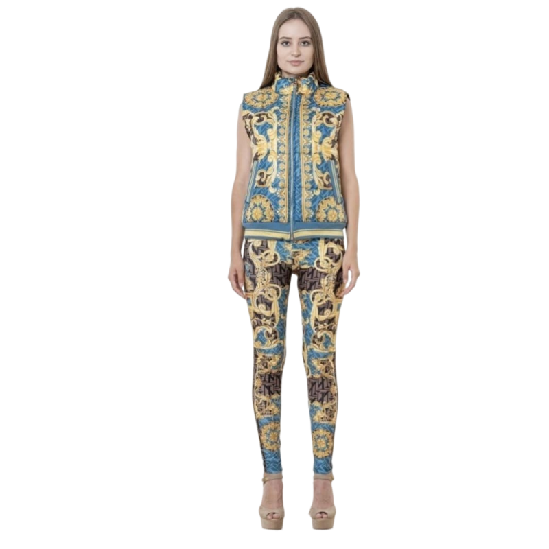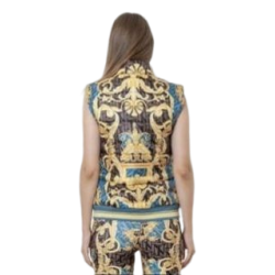 Chaleco NICE ISTANBUL con estampado barroco en tonos azules y amarillos, cierre con cremallera. Un chaleco cómodo y elegante ideal para un estilo sport chic.