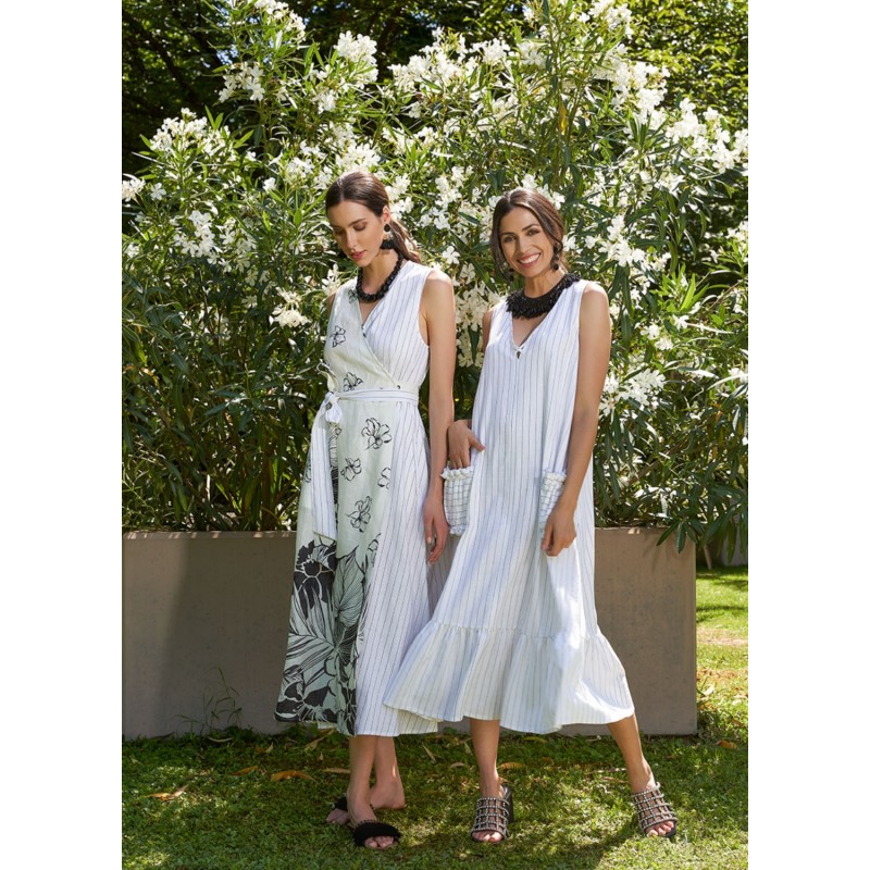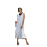 Vestido LFDL sin mangas y con cuello de pico abierto sin botones, el vestido es tirado con pequeño volante en la parte de abajo, consta también de dos bolsillos arrugados haciendo del mismo un vestido muy original. Un vestido ideal para esta nueva temporada. Estilo sport chic.