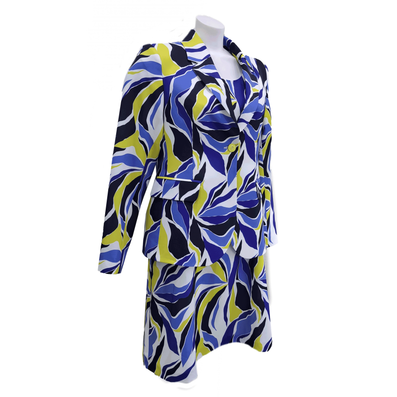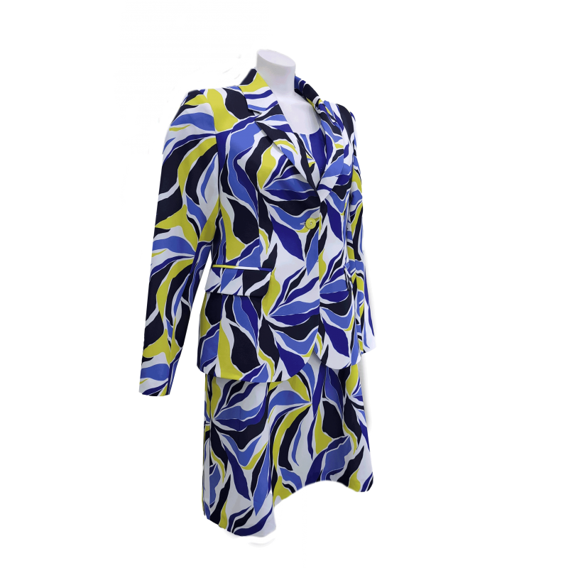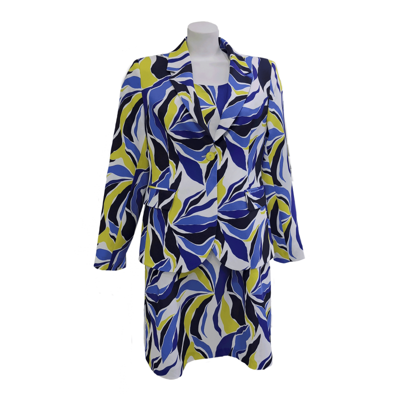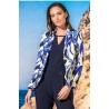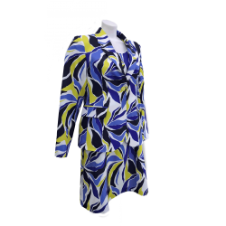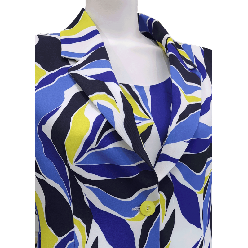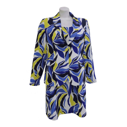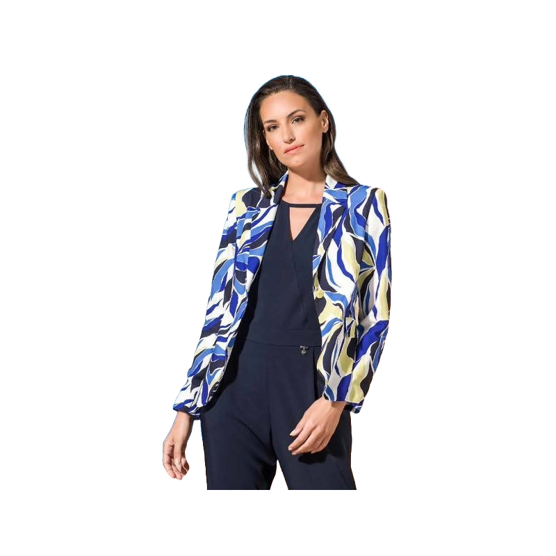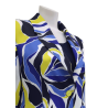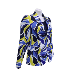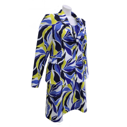 Americana SCUSI con estampado floral en tonos azules y amarillo. La americana ideal para combinarla con vestido a conjunto. Una americana muy cómoda y llevadera ideal para esta nueva temporada primavera-verano.