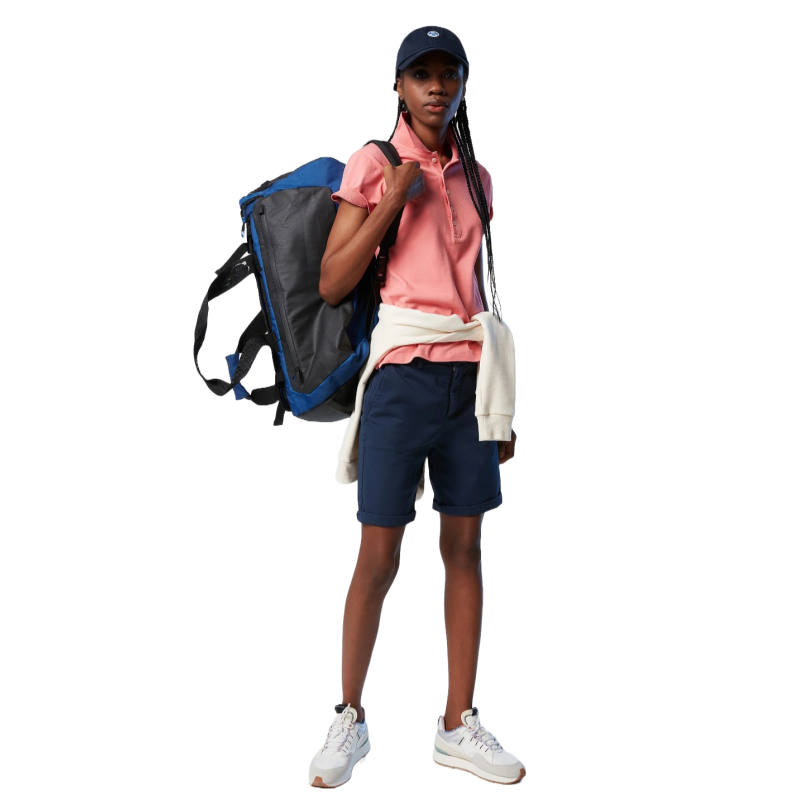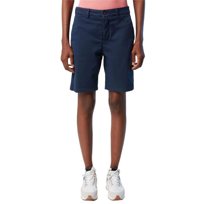 Pantalón corto tipo chino para mujer confeccionado con gabardina elástica de algodón orgánico. Bolsillos al bies y bolsillo de ojal en la parte trasera, incluye etiqueta reflectante con logotipo. Confeccionado con gabardina elástica de algodón orgánico. La cinturilla con trabillas crea un look atemporal. Bolsillos al bies y bolsillo trasero de ojal. El parche reflectante con logotipo en la parte trasera le aporta un toque distintivo.