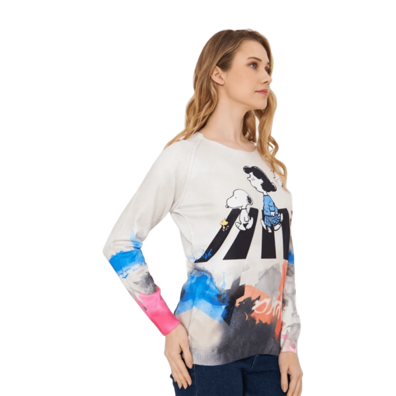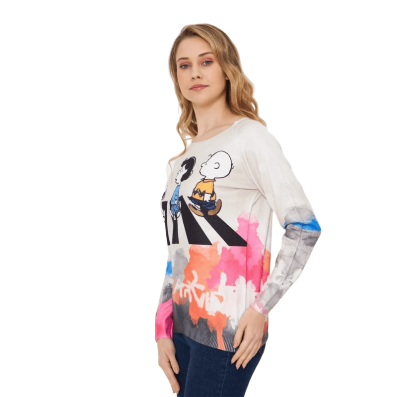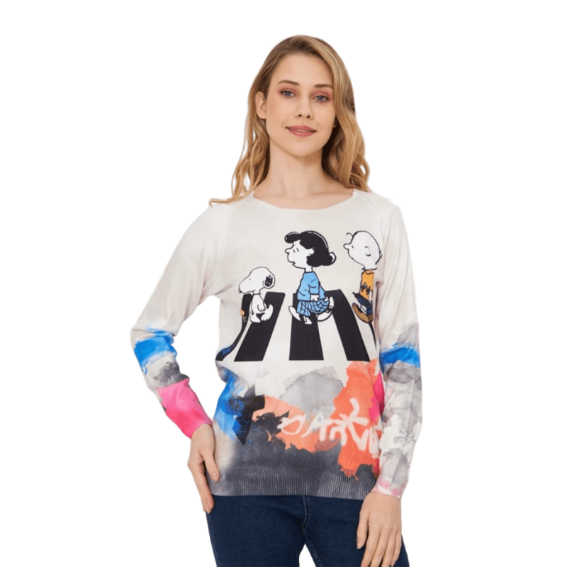 Jersey snoopy y amigos en cuello redondo de MISSY. El jersey de manga larga ideal para el día a día. Un jersey sport chic ideal para esta temporada.