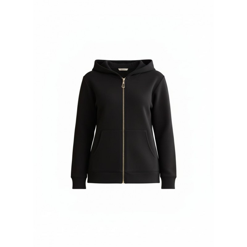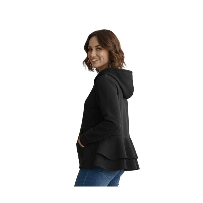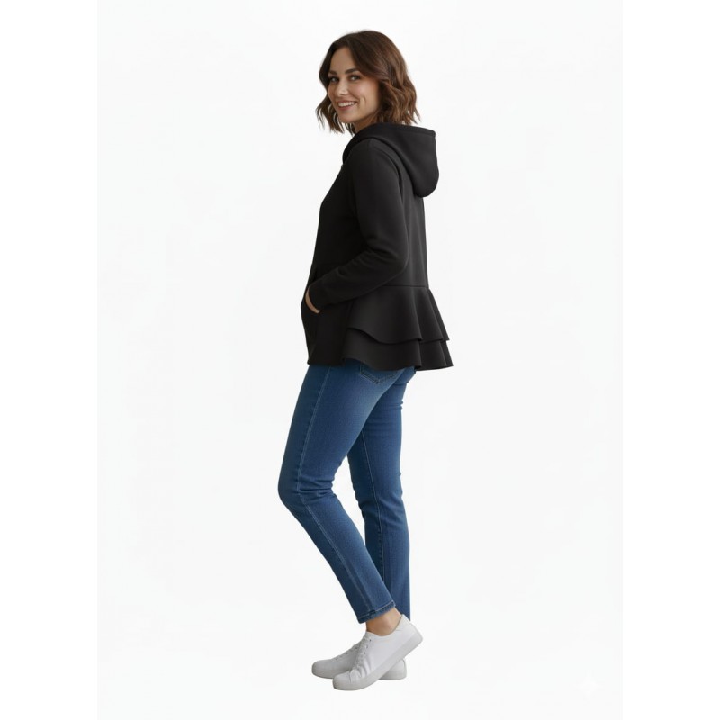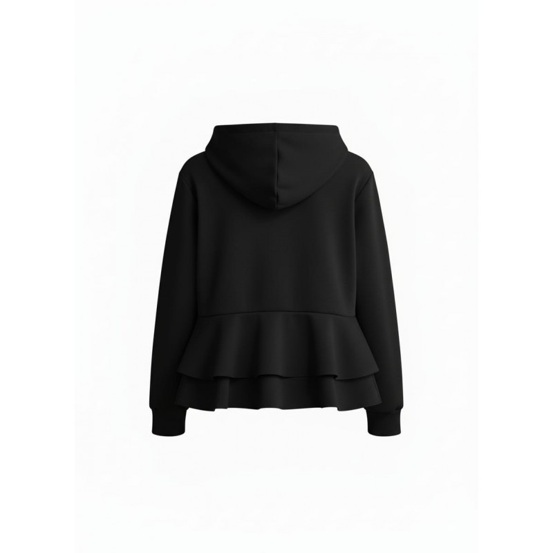 LOLITAS Chaqueta con capucha y cremallera de manga larga. Bolsillos delanteros y una parte de atrás con un sutil volante que atrae miradas Una prenda sport chic ideal para esta temporada.