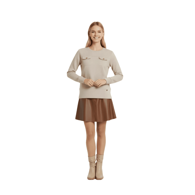 LOLITAS Jersey de punto beige con botones dorados. El corte tipo canesú en delantero y espalda de manga larga y cuello redondo. Una prenda sport chic ideal para esta temporada.