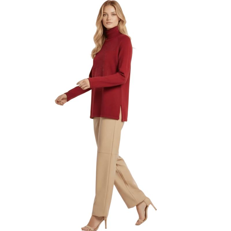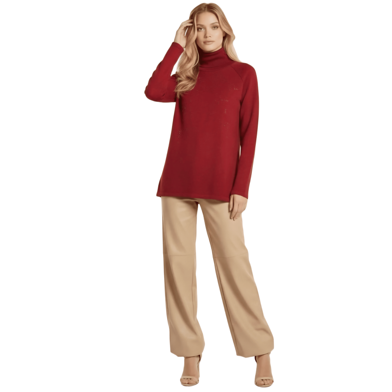 LOLITAS Jersey de punto suave y elástico con cuello alto con strass en color dorado