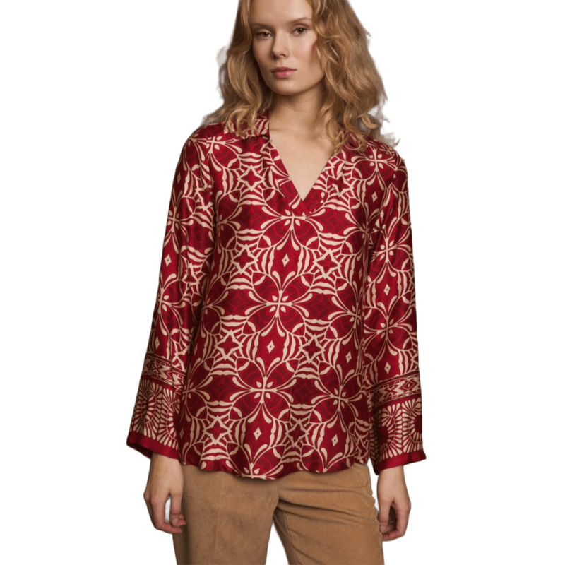 Stock limitado en las tallas más demandadas, consíguela en luxury-shop.Blusa Ausa estampado en tonos rojo y cobre TINTA & BARILOCHE