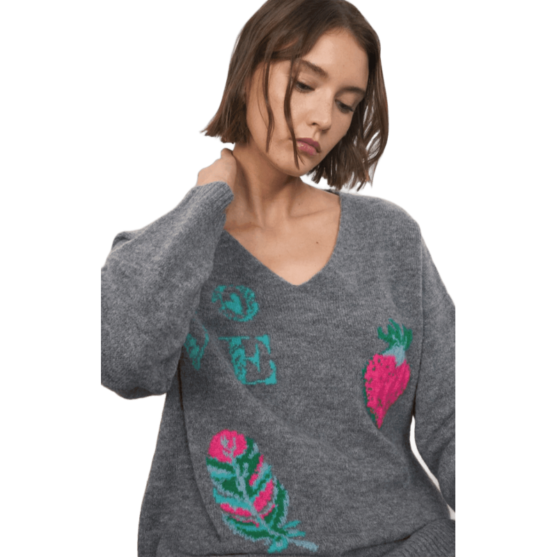 TINTA & BARILOCHE Jersey de punto estampado. Cuello pico. Diseño recto. Manga larga. Bajo recto.TALLAJE: