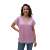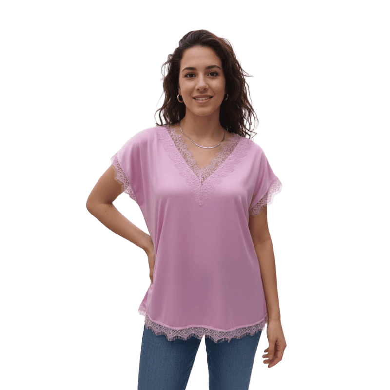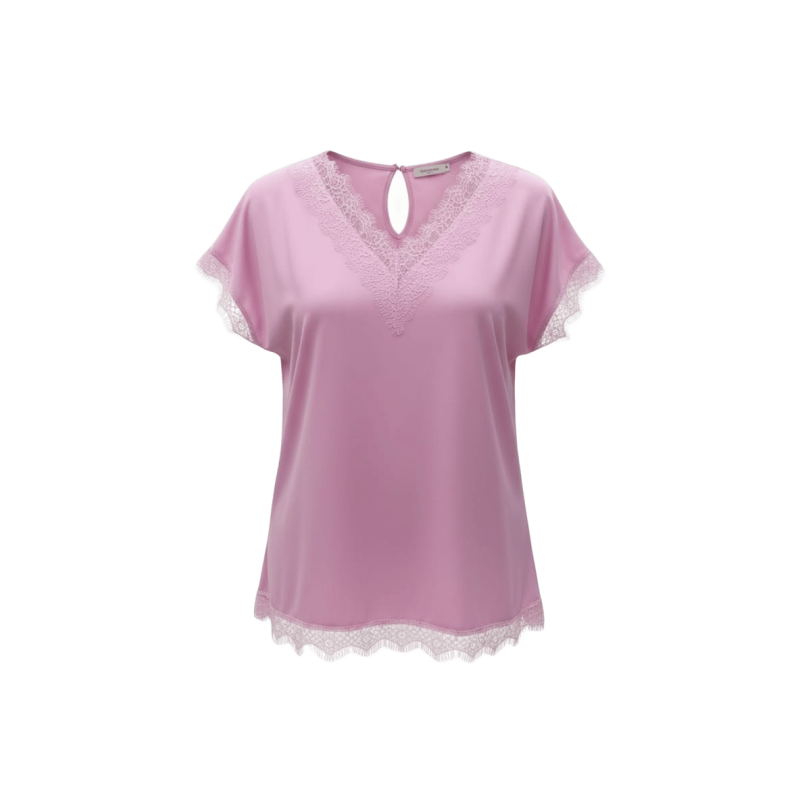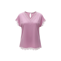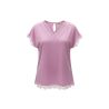 TINTA & BARILOCHE Blusa lisa satinada con detalle lencero en escote, mangas y bajo. Escote en pico. Diseño recto. Manga corta. Bajo recto.