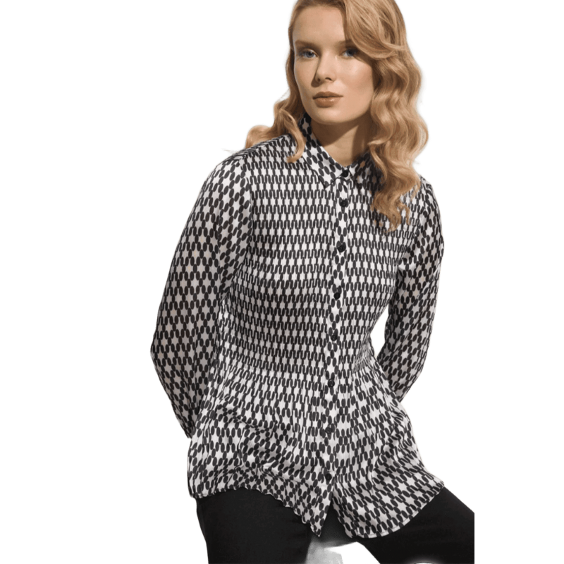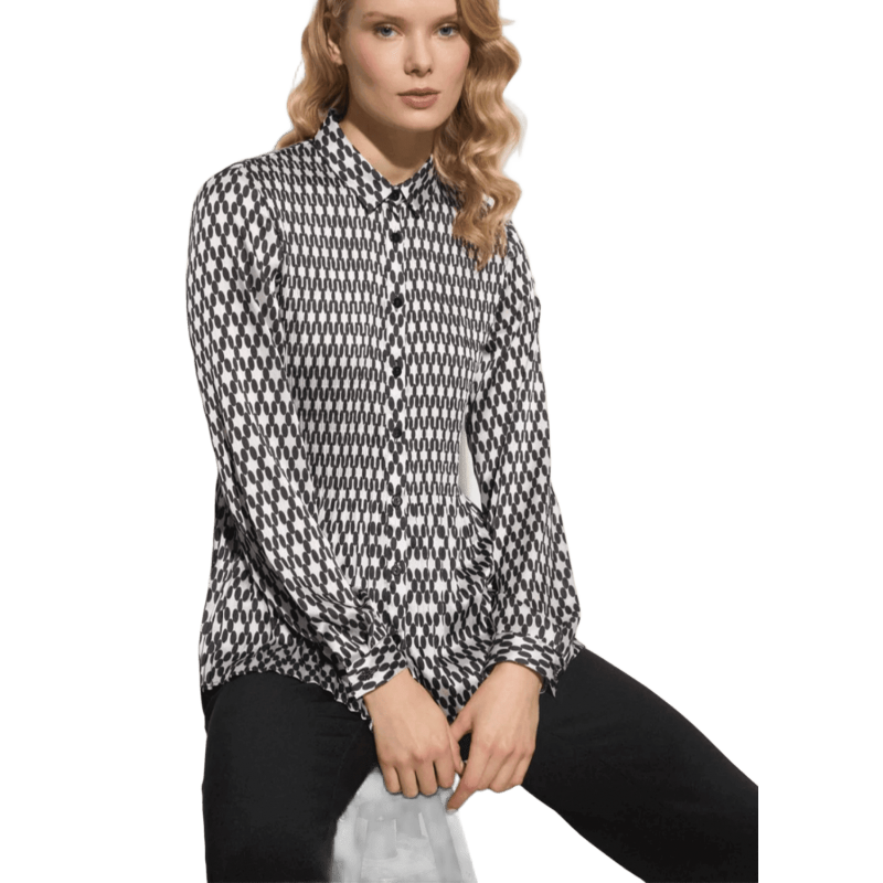 TINTA&BARILOCHE  Blusa fluida plisada con estampado paisley. Cuello camisero. Manga larga y puño con cierre de botón metálico. Cierre frontal con botones efecto nácar al tono. Bajo recto.