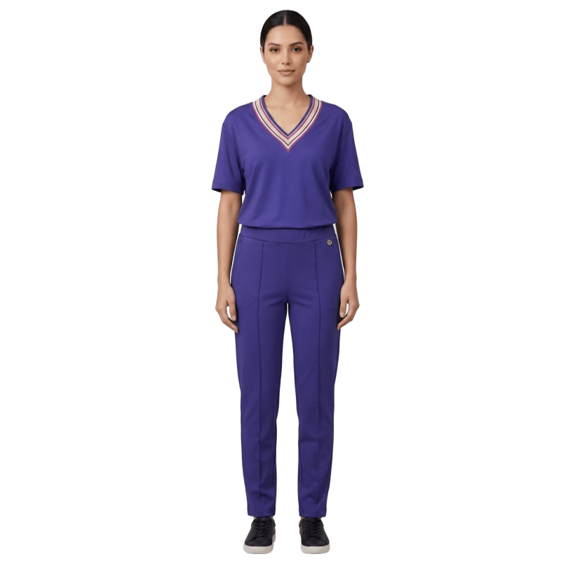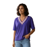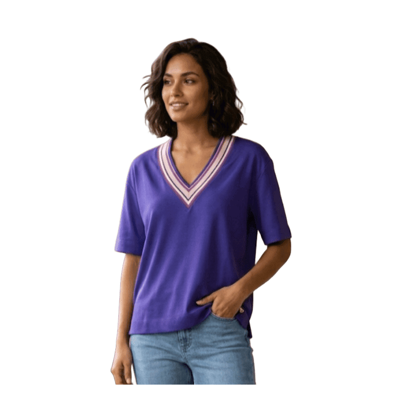 Camiseta en punto de seda y escote en pico SCUSI. Una camiseta sport chic. Puedes combinarla con su pantalón a juego. Ideal para esta nueva temporada primavera-verano.