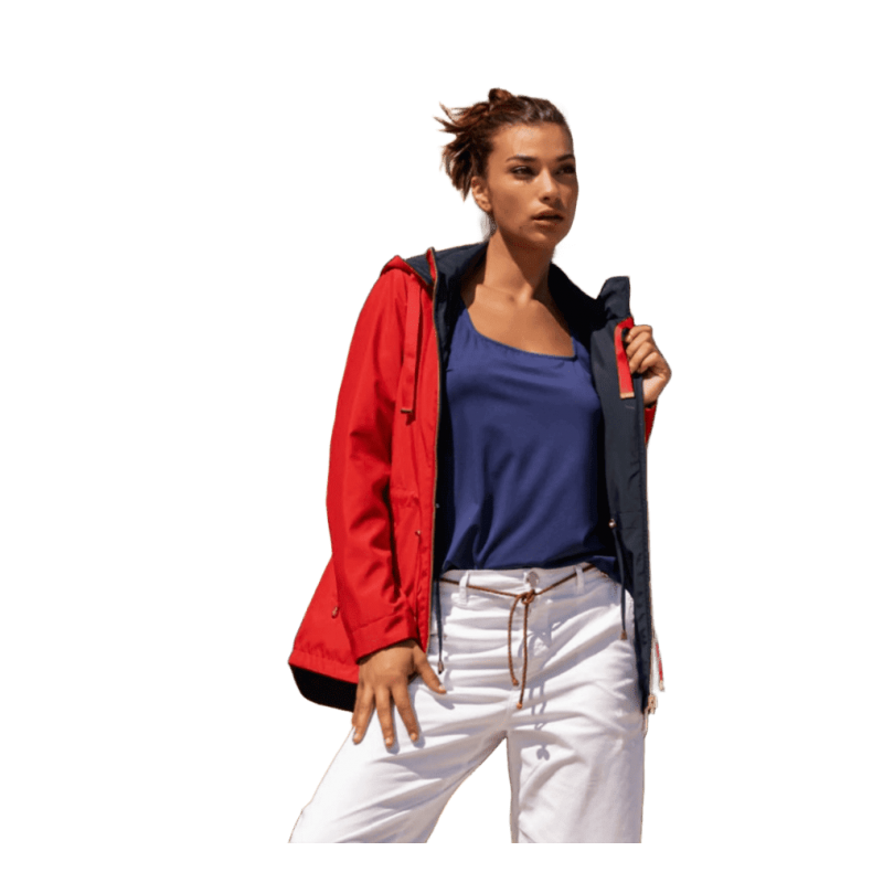 Parka reversible con ajuste en la cintura SCUSI. Una parka con 3 variantes: negra-camel. marino-celeste y marino-rojo. Una parka imprescindible para esta temporada.