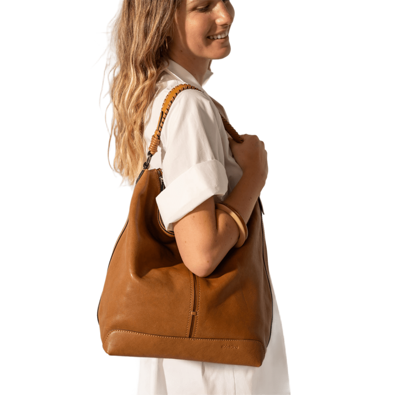 Asa trenzada que aporta carácter y un acabado artesanal.