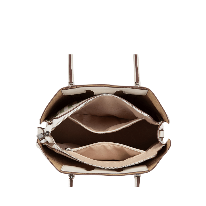 Interior forrado con compartimentos organizadores que aportan funcionalidad.