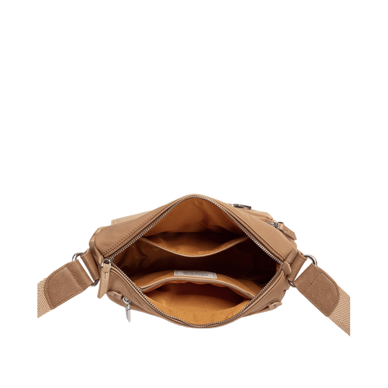 Interior forrado con compartimentos organizadores que aportan funcionalidad.
