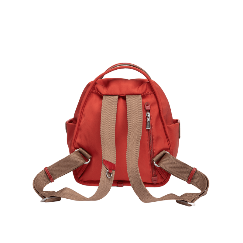 Bolsillo frontal con cremallera y bolsillo trasero antirrobo.