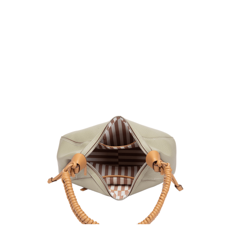 Asa de hombro trenzada en color cuero para mayor comodidad.