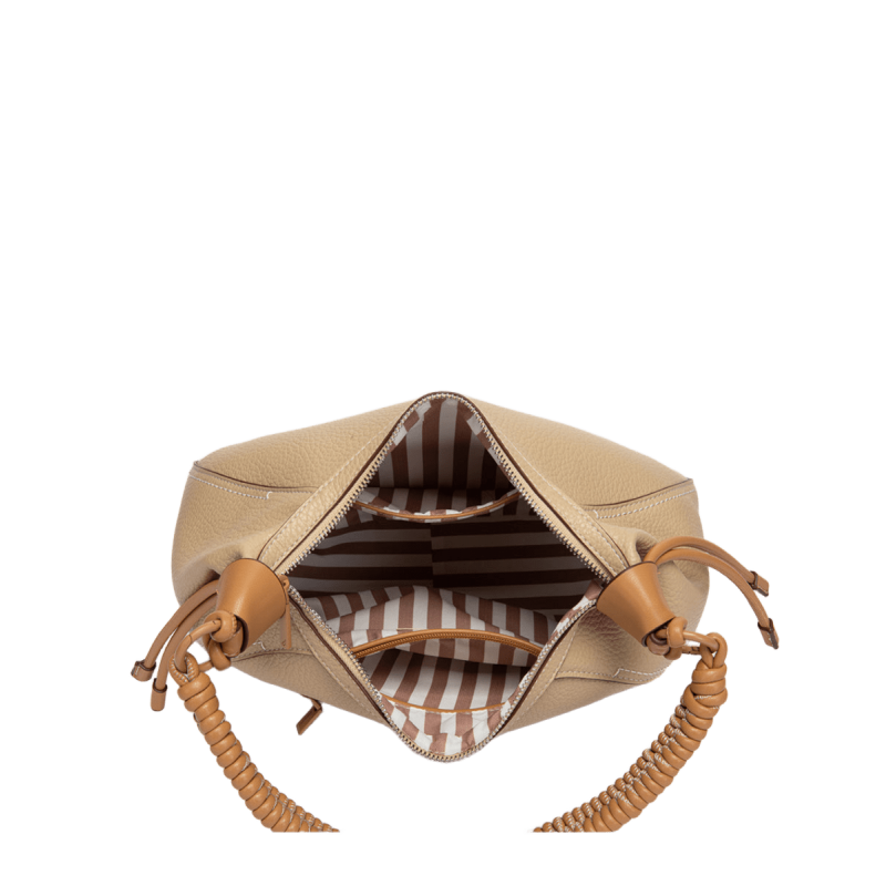 Asa de hombro trenzada en color cuero para mayor comodidad.