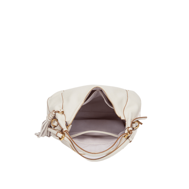 Gran borla lateral que añade un detalle sofisticado y femenino.
