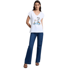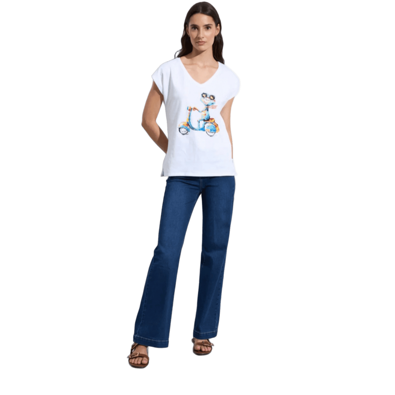 TINTA & BARILOCHE Camiseta de manga corta. Cuello de pico. Estampado artístico de una rana en scooter. Corte recto. Bajo recto.