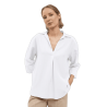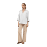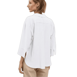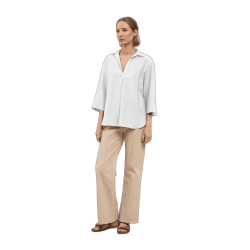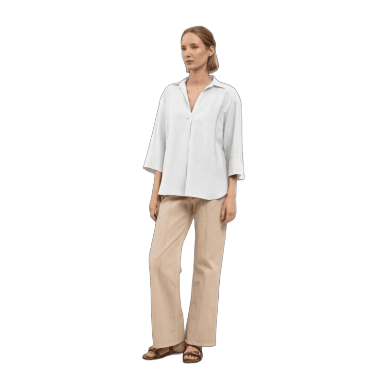 TINTA & BARILOCHE Blusa de manga francesa. Cuello camisero abierto. Detalle de pliegue central delantero. Escote en "V". Bajo recto.