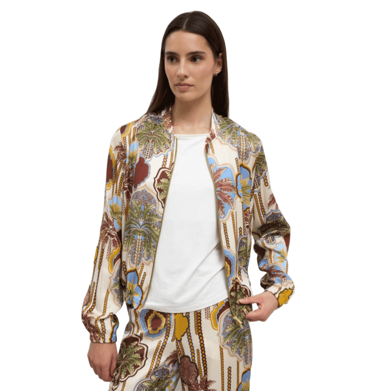 TINTA & BARILOCHE Chaqueta tipo bomber estampada. Tejido fluido. Cuello redondo. Manga larga. Cintura y puños con acabado en elásticos. Cierre frontal con cremallera. Bolsillos laterales.TALLAJE: