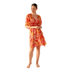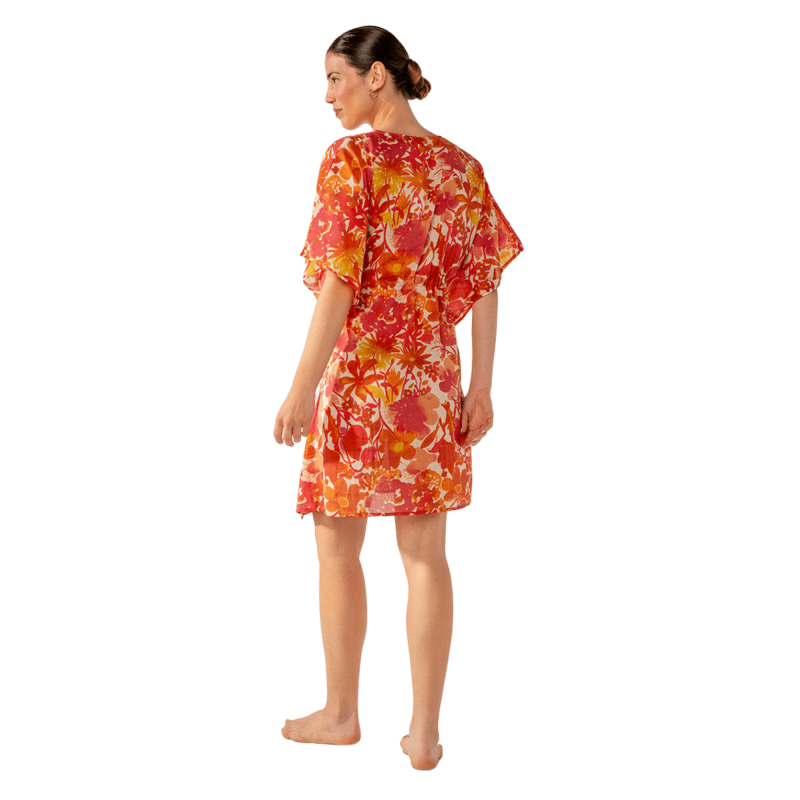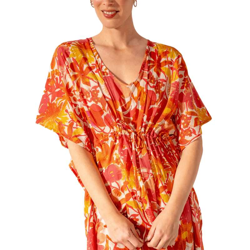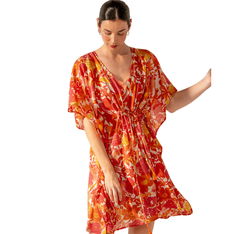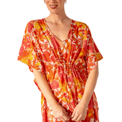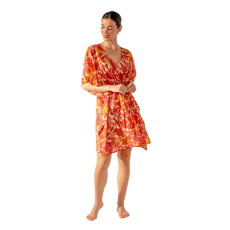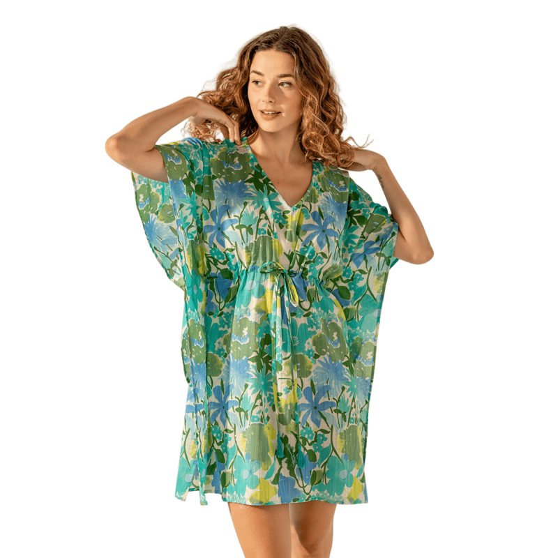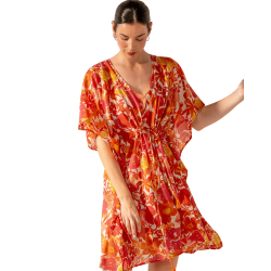 ABBACINO Caftán de mujer elaborado en algodón con un bonito estampado floral. Su tejido es muy holgado y suave al tacto, por lo que es un complemento perfecto para acompañarnos durante los días más calurosos del año. Cuenta con un cordón ajustable en la cintura para adaptarse y ceñirse al cuerpo.