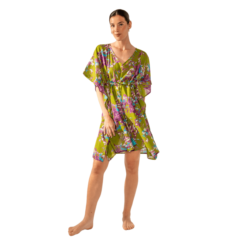 ABBACINO Caftán de mujer elaborado en algodón con estampado floral. Su tejido es muy holgado y suave al tacto, por lo que es un complemento perfecto para acompañarnos durante los días más calurosos del año. Cuenta con un favorecedor escote pico y un ajuste mediante un lazo en la cintura para estilizar la silueta.