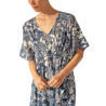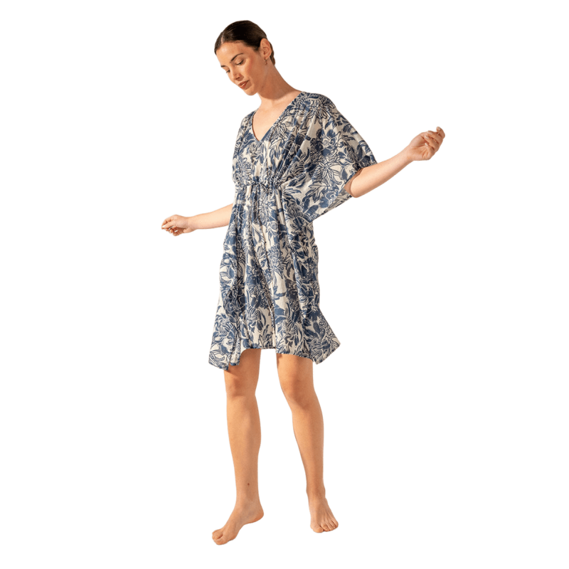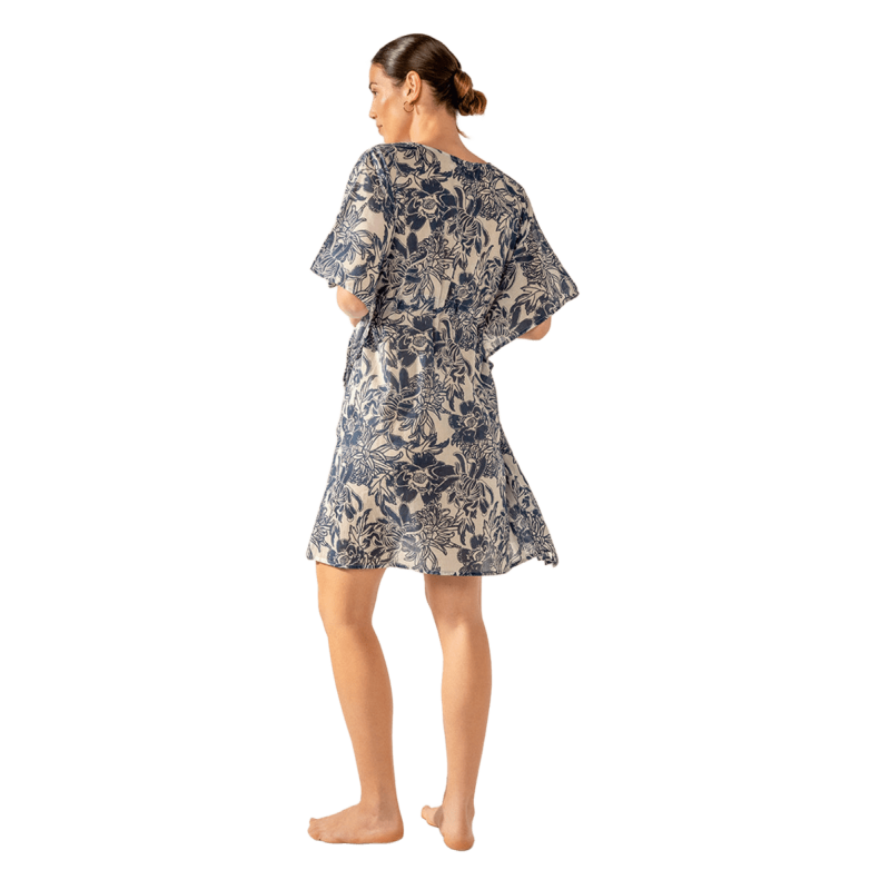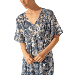 ABBACINO Caftán de mujer elaborado en algodón con estampado floral que combina dos tonos de color. Su tejido es muy holgado y suave al tacto, por lo que es un complemento perfecto para acompañarnos durante los días más calurosos del año. Cuenta con un favorecedor escote pico y un ajuste mediante un lazo en la cintura para estilizar la silueta.