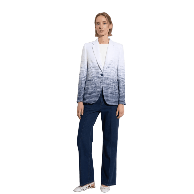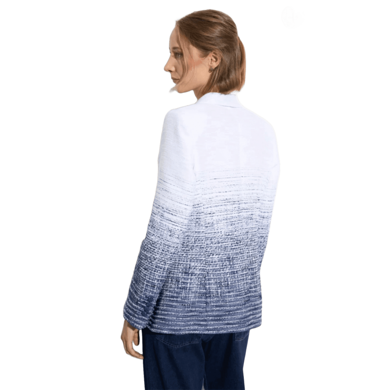 TINTA & BARILOCHE Americana entalladade tweed degradado. Cuello con solapa de muesca. Cierre frontal con botón joya. Manga larga con botones coordinados. Dos bolsillos frontales ocultos de ribete. Bajo redondeado.TALLAJE: