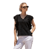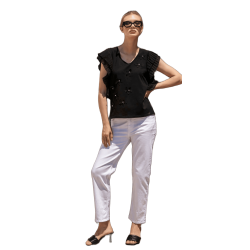 Camiseta de algodón con detalles florales al tono y pedrería SCUSI. Una camiseta muy chic para combinarla con jeans o con pantalones de vestir. Una camiseta para ser la reina de la fiesta esta nueva temporada primavera-verano.