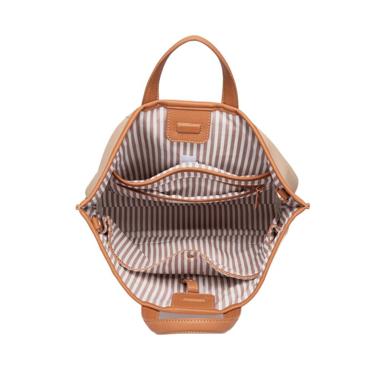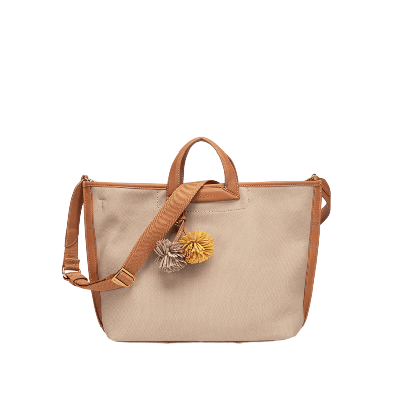 Asa bandolera textil de quita y pon para llevarlo al hombro o cruzado, además de asas cortas para mayor comodidad.
