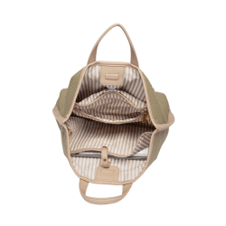 Asa bandolera textil de quita y pon para llevarlo al hombro o cruzado, además de asas cortas para mayor comodidad.